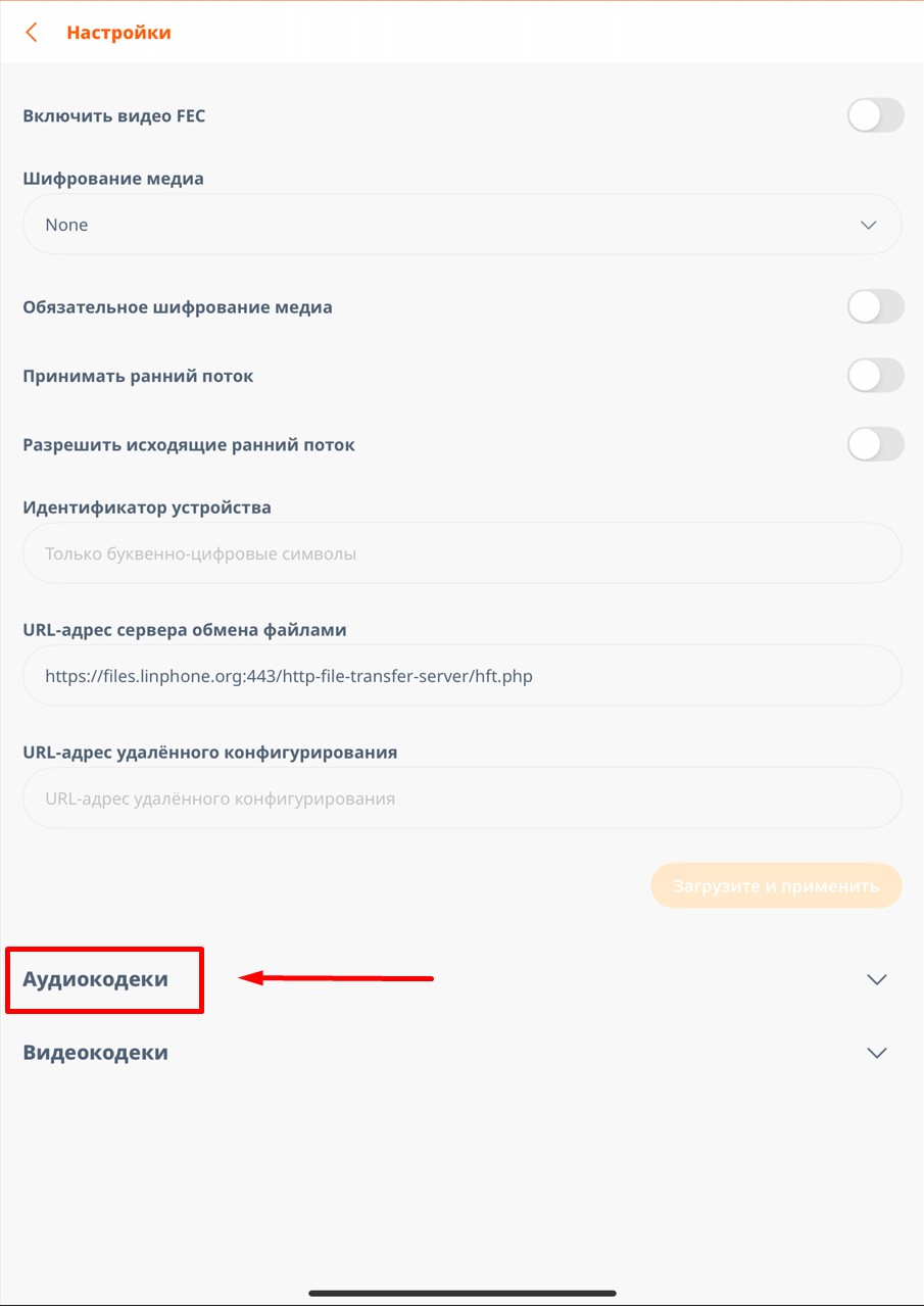 13.Оставьте включенными два пункта кодеков: PCMU и PCMA