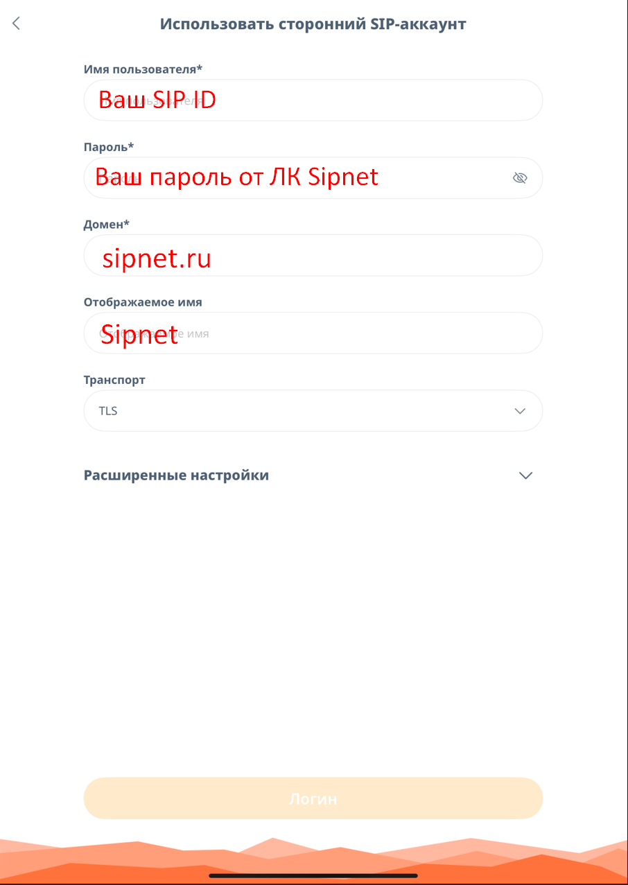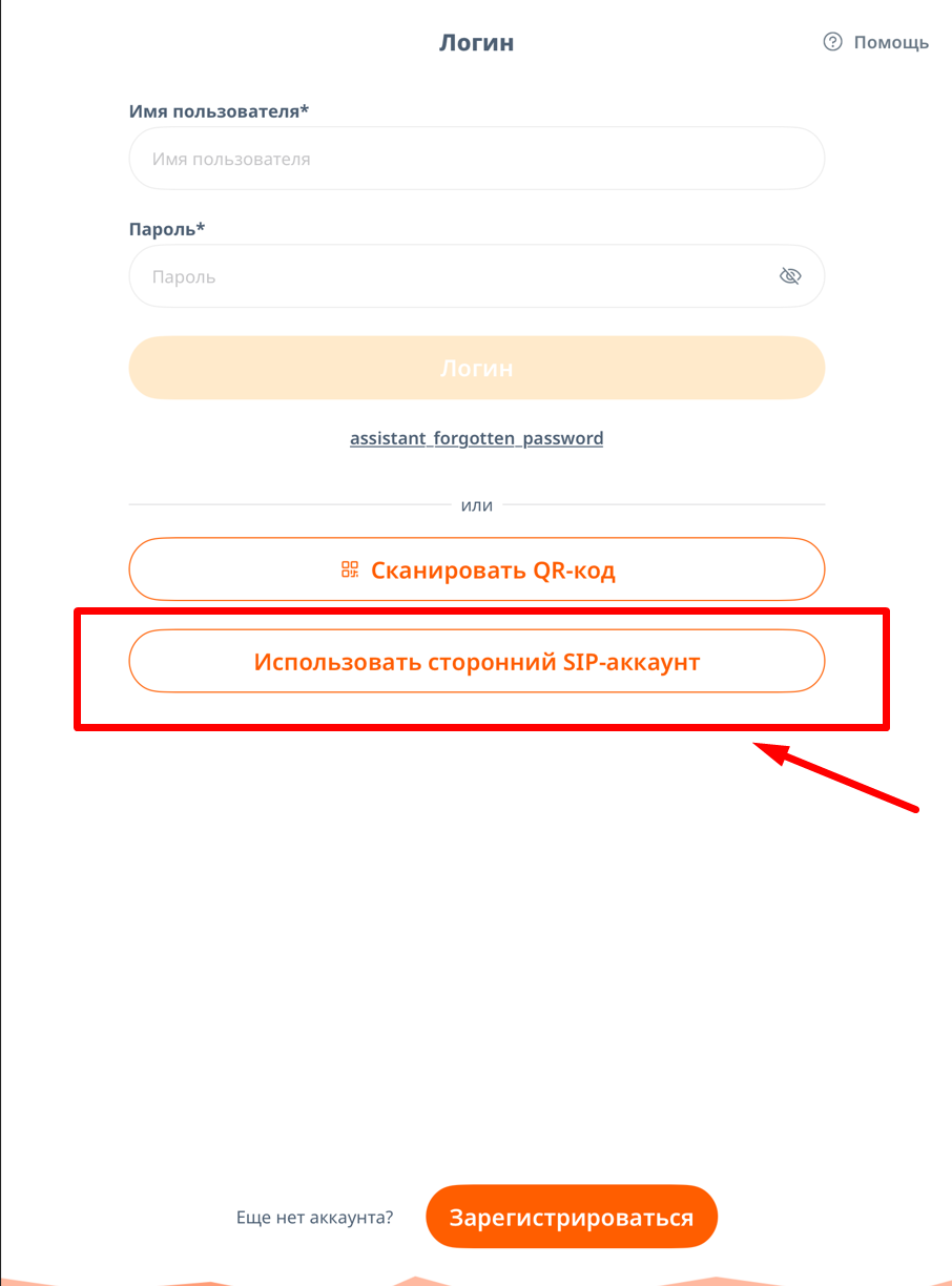 3. В следующем окне нажмите “Использовать сторонний SIP-аккаунт” |